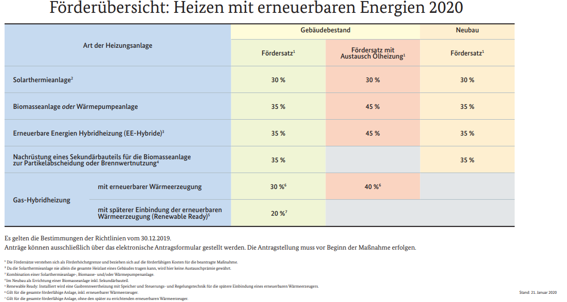 Förderung für den Austausch und die Optimierung der Heizung 2020